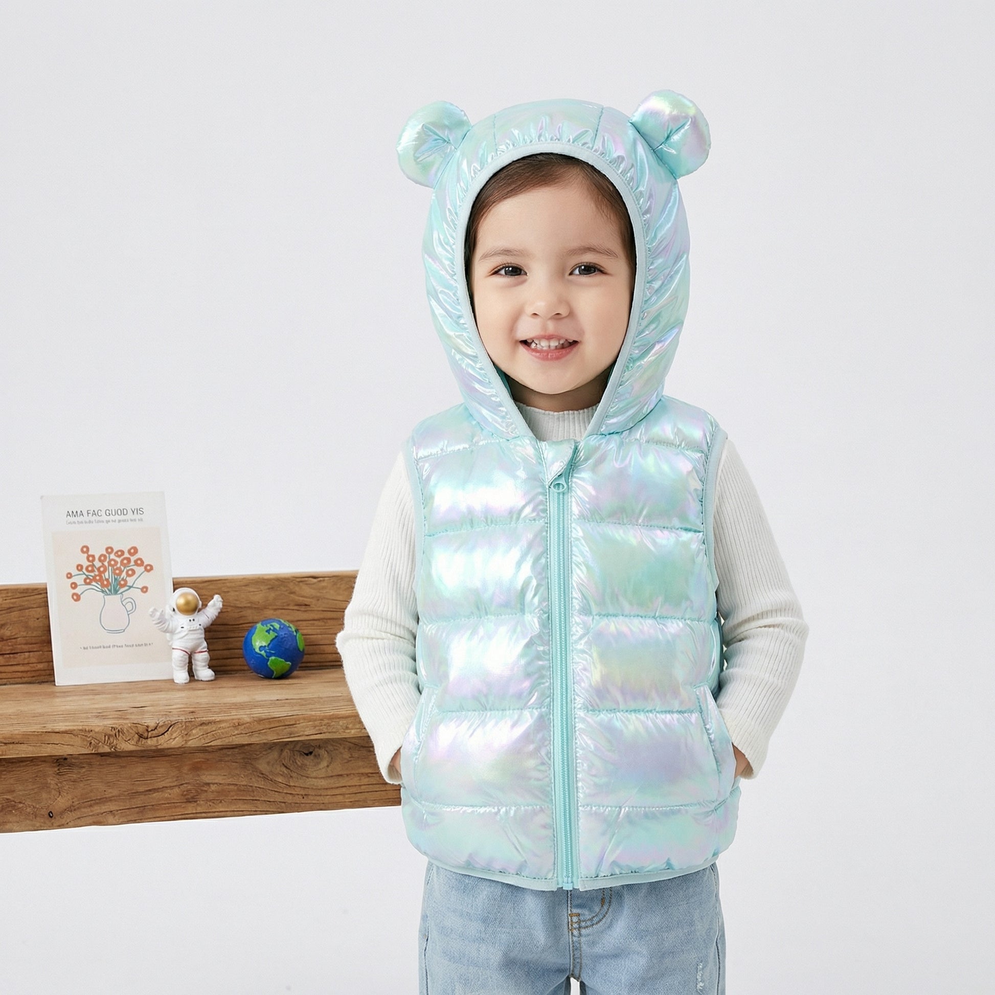 Brilla con estilo en este chaleco verde perlado que combina elegancia y diversión. Su acabado perlado le da un toque especial que destaca bajo cualquier luz, perfecto para niñas que quieren verse radiantes. Versátil y cómodo, es la prenda ideal para completar cualquier outfit con personalidad. ¡Un must-have que toda niña desea tener!